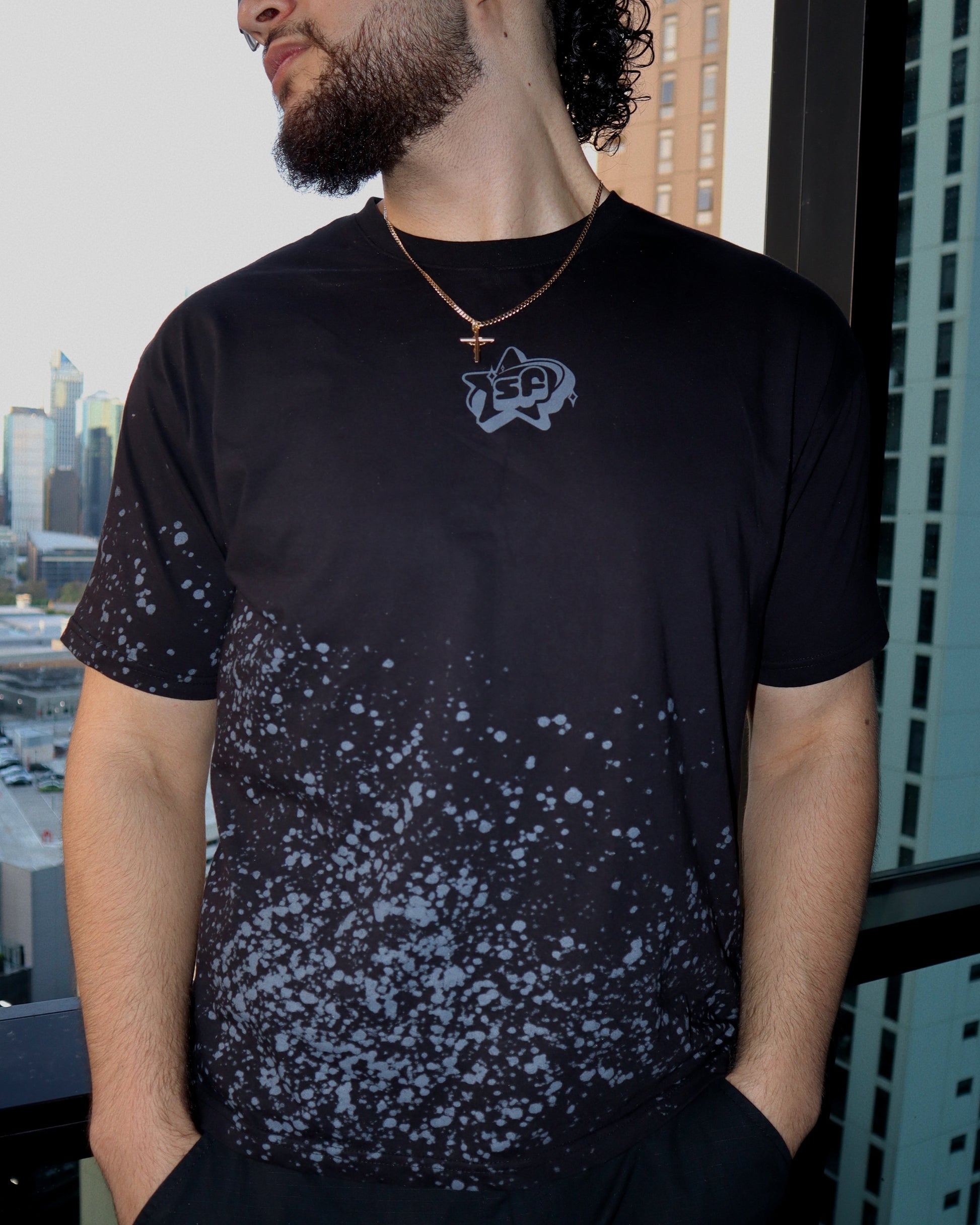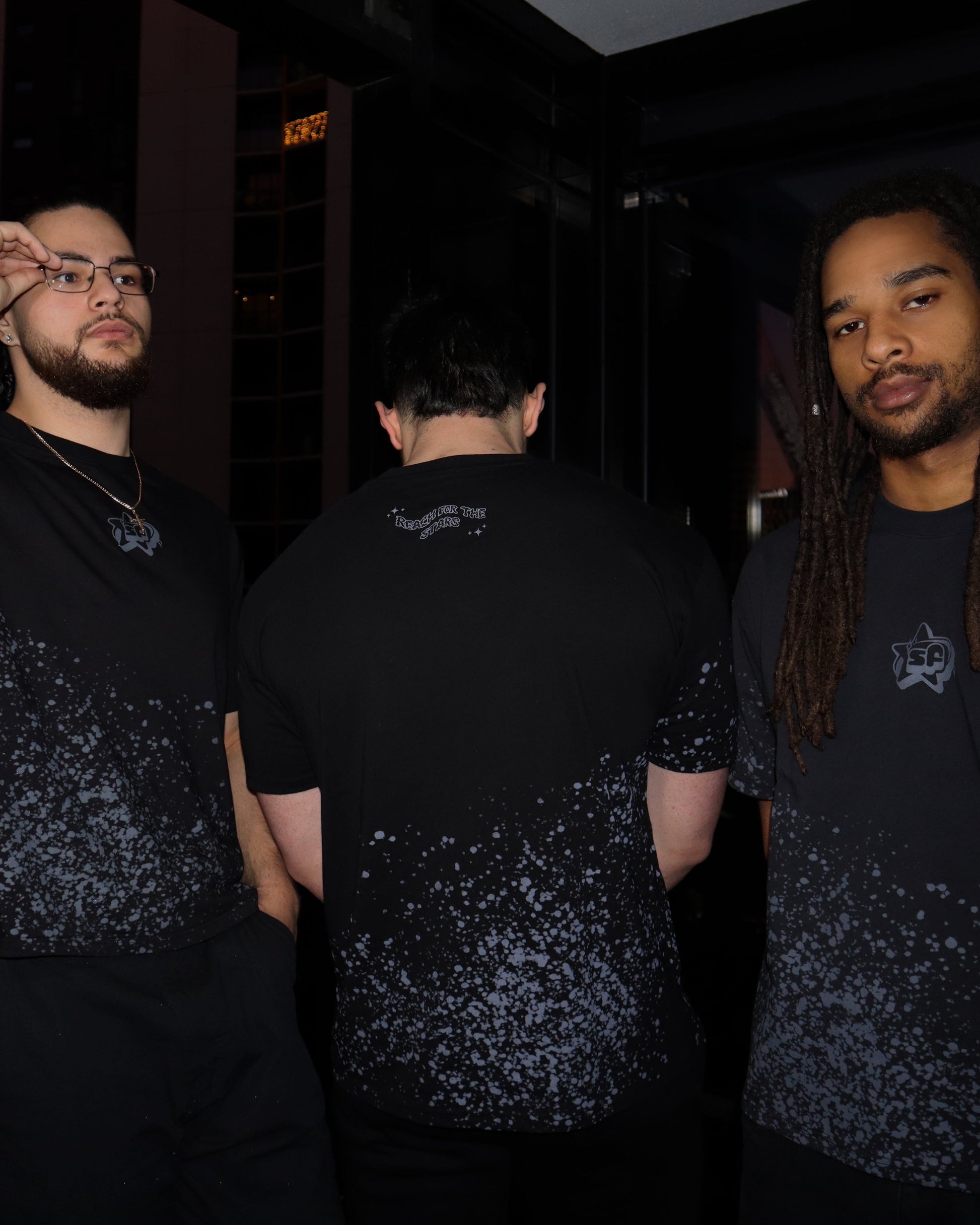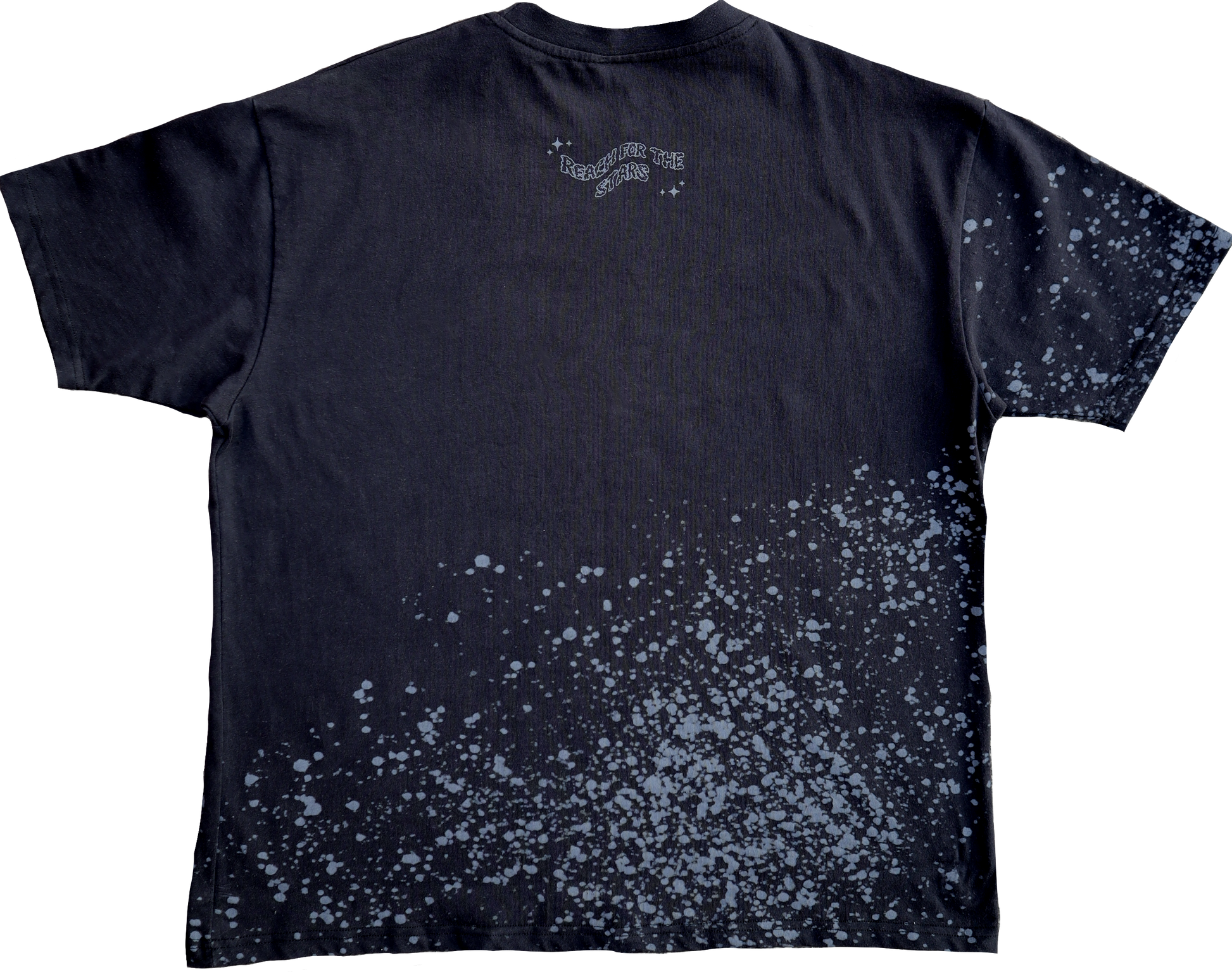 ☆Screen printed paint splatter, "reach for the stars" on the back, star logo on the front.