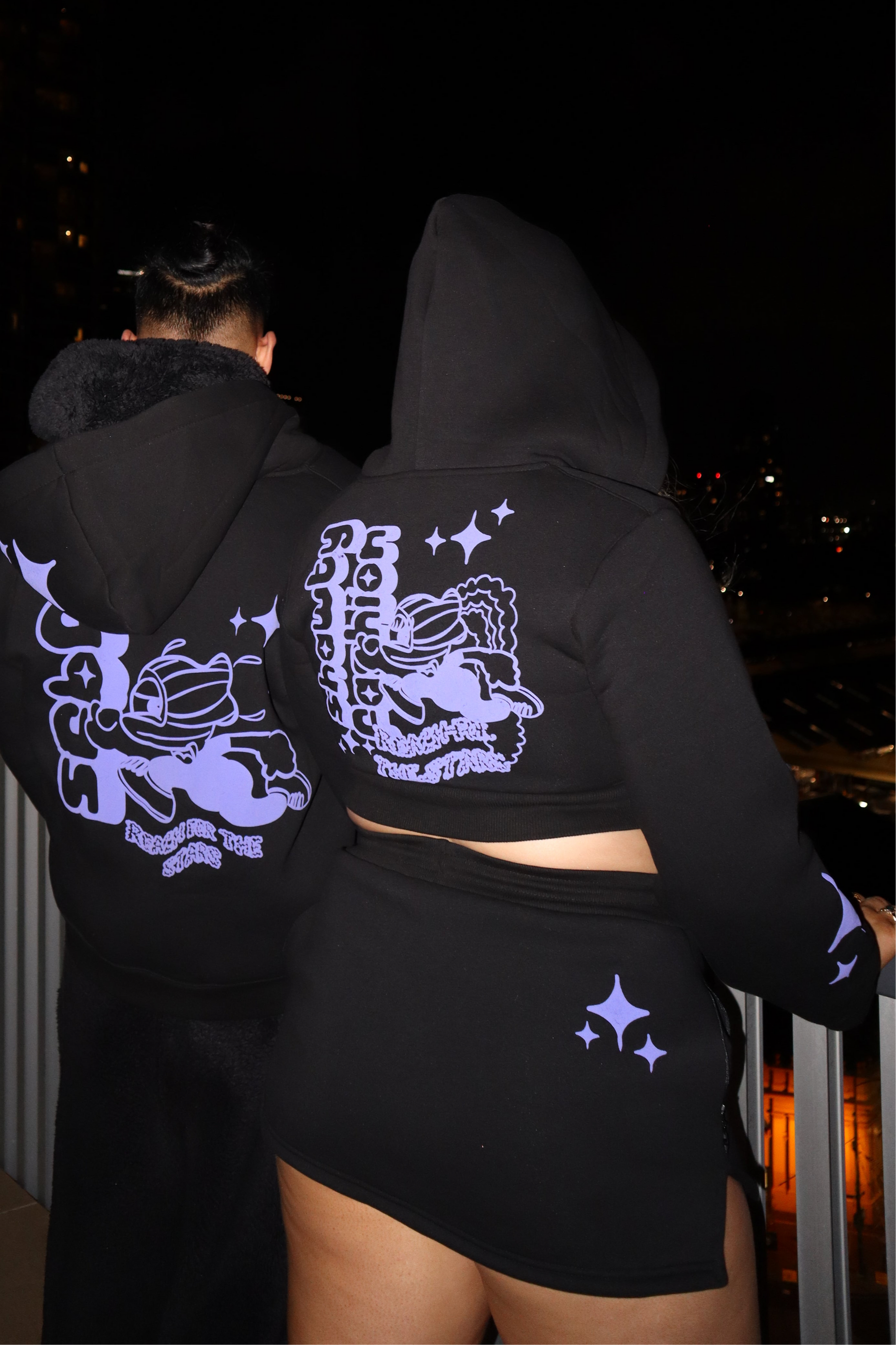 The material is such great quality, it’s thick and warm, nice and fleecey on the inside. I had an issue with one item and also needed to exchange sizing and the team were so helpful they were onto it straight away and had them swapped and back to me within a week! Super happy with the customer service and would defs recommend, so cute can’t wait to wear it!! If you are a bit bigger round the bust I would defs suggest a Large for the cropped hoodies!